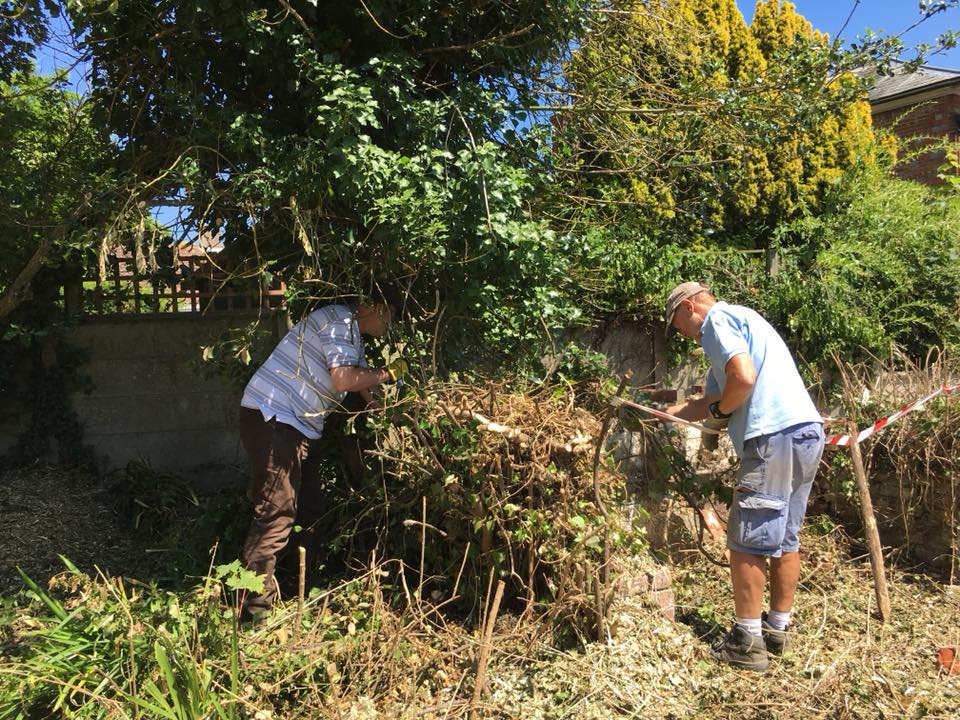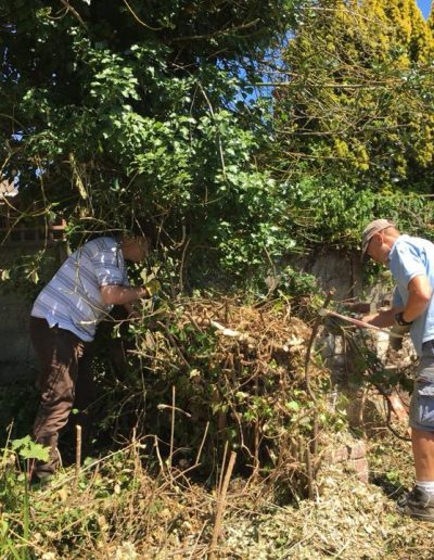 More great progress in the garden last weekend. Thanks to Paul Wilkinson who organised the hire machinery and masterminded the gang to safely feed the bracken branches and vines. #healthandsafety